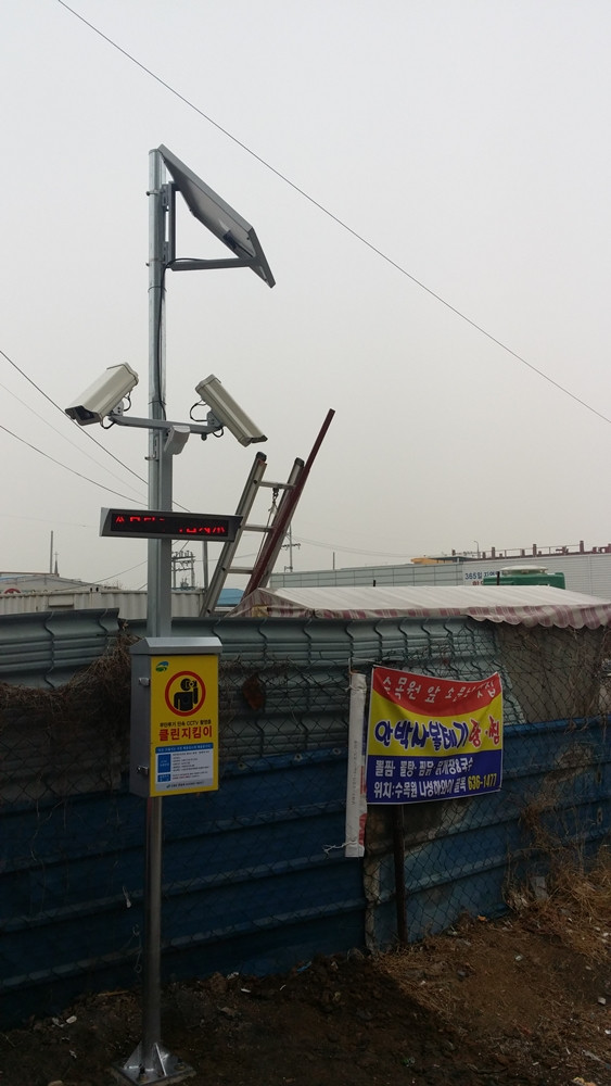 말하는 스마트CCTV는 쓰레기 무단투기 단속 CCTV로 사람이나 차량이 15m이내로 접근하면 경고 조명과 함께 “쓰레기 무단투기 단속 촬영중 입니다. 적발시 100만원 이하의 과태료가 부과됩니다. 쓰레기를 무단투기 하지 맙시다” 라는 방송과 무단투기 경고 자막이 송출된다.