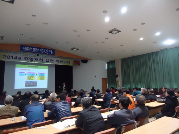 이번에 실시한 교육은 농업경영연구원 오구연 원장의 특강으로 진행되었으며 변화하는 농업환경에 대응하여 강소농이 되기 위한 실천항목인 비용절감, 품질향상, 고객확대, 가치향상, 역량개발의 필요성을 강조하였다. 또한 각 항목별 실천방안으로 경영계획서와 실행보고서를 직접 작성해보고 변화되는 경영상태를 느끼고 개선점을 직접 찾을 수 있는 능력을 키워주는 교육이 되었다.