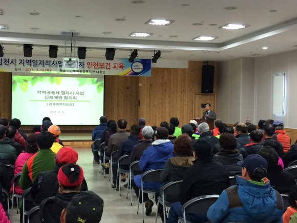 |  | | | ⓒ CBN 뉴스 | | [이재영 기자]= 김천시는 지난 13일 근로자종합복지관에서 안전보건공단과 김천경찰서, 김천소방서의 협조를 받아 공공근로 및 지역공동체일자리사업 참여자 약 150명을 대상으로 ‘사업장 안전보건교육’을 실시했다.
