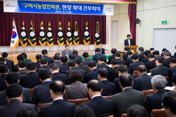 |  | | | ⓒ CBN 뉴스 | | [이재영 기자]= 구미시에서는 3. 17(월) 5급이상 전 간부공무원 94명이 참석한 가운데 새봄을 맞아 생동감이 넘치는 농촌현장, 농업인회관을 찾아 현장 확대 간부회의를 개최하였다.