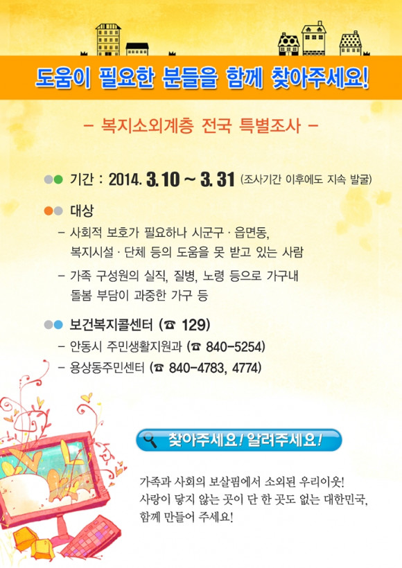 또한 안동우체국과 공조해 지역 내 우편집배원을 활용한 발굴체계를 구축, 특별조사기간 이후에도 지속적으로 사각지대 발굴을 추진해 나갈 계획이다.