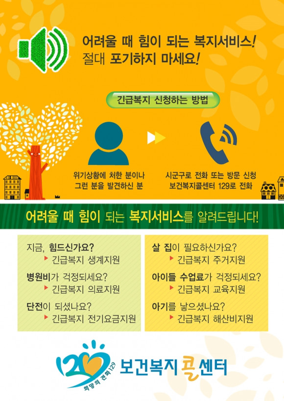 우선 사회복지공무원, 통반장, 주민자치위원회, 새마을지도자협의회, 새마을부녀회 등으로 복지사각지대 발굴추진단을 구성했다. 도움이 필요한 분들을 함께 찾아보자는 내용과 함께 어려울 때 힘이 되는 복지서비스를 여섯 가지 분야로 나누어 구체적으로 적시하고 절대 포기하지 말고 도움을 청할 것을 권하는 전단지를 배부해 복지소외계층 발굴을 집중적으로 홍보하고 있다.