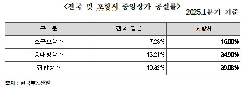 지역 철강기업의 경영악화는 소비 심리 위축으로 이어져, 2025년 1분기 기준으로 포항시 중앙상가 공실률은 전국 평균을 크게 웃돌아 지역경제에도 악영향을 주고 있다.