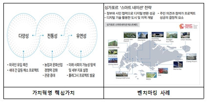 세부적으로 다양성 향상을 위해 외국인 유입 촉진·세대 갈등 해소 프로젝트・다문화 공존 사회 조성을, 전통성 향상을 위해 농업・문화산업 경쟁력 강화・관광산업 활성화・전통문화의 현대적 재해석을, 유연성 향상을 위해 미래 시나리오 분석, 세부 지표 설정을 통해 플래그십 프로젝트 발굴, 변화를 수요하는 정책 설계 등이 제안되었으며, 해외 사례로는 주민 참여를 통한 변화의 성공 사례인 싱가포르의 ‘스마트네이션’전략을 벤치마킹 사례로 제시했다.