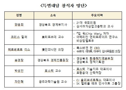 특별 대담은 양금희 경상북도 경제부지사를 포함하여 크리스 밀러(美터프츠대 교수), 헤르베르트 디스(獨인피니언 의장), 송경창(경상북도 경제진흥원장), 박성진(포스텍 교수), 차인혁(광주과학기술원 교수)등이 참여한, 행정과 기업 및 학계를 두루 포괄하는 전문가로 구성됐다.
