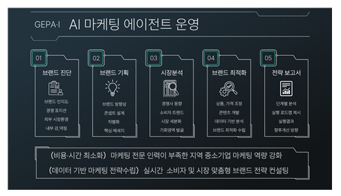 'GEPA·I는 인공지능 기술을 기반으로 한 통합 마케팅 지원 플랫폼으로, 중소기업과 소상공인의 전문 인력 부족 문제를 해소하고 전략 기획 기능을 보강해 실질적인 매출 증대로 이어지도록 설계됐다.