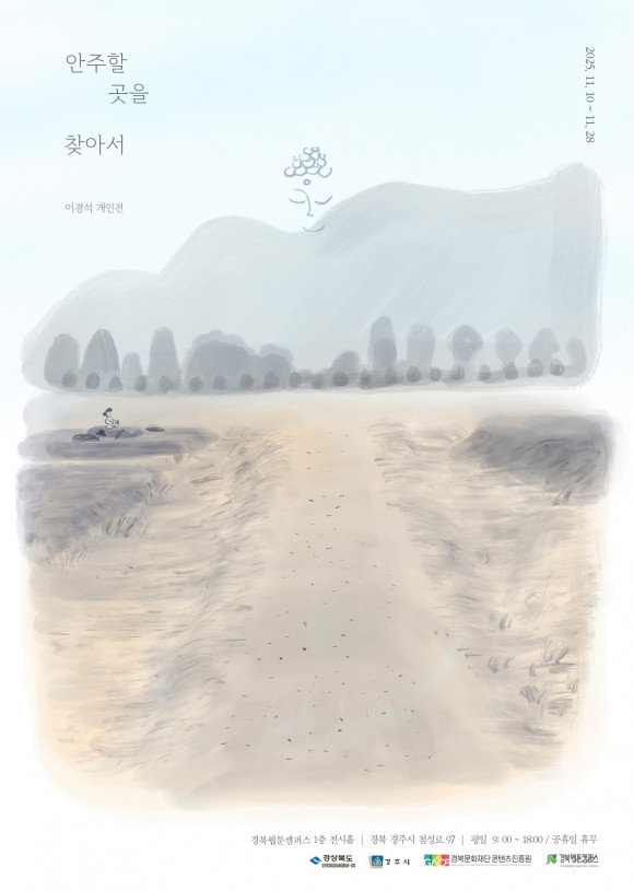|  | | | ↑↑ 2025경북웹툰캠퍼스 지역작가 전시공모 포스터_이경석 | | ⓒ 씨비엔뉴스 | | [cbn뉴스=이재영 기자] 경북문화재단 콘텐츠진흥원(원장 이종수, 이하 진흥원)이 운영하는 경북웹툰캠퍼스(이하 캠퍼스)는 <2025 경북웹툰캠퍼스 지역 작가 전시 공모>의 네 번째 전시로 ‘이경석’ 작가의 개인전 <안주할 곳을 찾아서>를 선보인다.