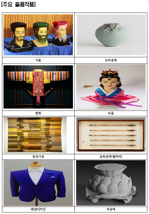 전시에는 한동식(석공예 명장) 회장 등 명장 20명이 제작한 석공예, 양복, 도자기, 한복 등 40점의 다양한 작품이 소개된다.