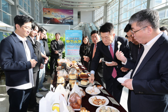 [cbn뉴스=이재영 기자] 포항시는 17일 시청 2층 솔라갤러리에서 ‘빵지순례 시식회 및 장학금 전달식’을 열고 지역 베이커리 산업과의 상생 프로젝트인 ‘베이크 더 포항(Bake the Pohang)’ 사업을 본격 추진했다. 이번 행사는 대한제과협회 포항시지부와 함께 마련된 미식 체험 행사로, ‘포항 빵지순례’ 참여 매장들이 만든 특색 있는 빵을 시민들에게 선보이고, 판매 수익금 일부를 장학금으로 전달하는 ‘맛과 나눔이 함께하는 축제의 장’으로 마련했다. 이날 시식회에는 김미숙 대한제과협회 포항시지부장을 비롯해 지역 베이커리 12개소(폴인브레드, 러블랑, 헤이안, 어니스크 장성점, 황일식과자점, 임춘복과자점, 빵나무이야기, 아임베이커, 구룡포 호랑이 바나나 글라세, 시민제과, 두낫디스터브효자, 퀸즈브레드)가 참여했다. |  | | | ↑↑ 행사에 참여해 지역 베이커리 시그니처 빵을 시식하고 있는 이강덕 포항시장 | | ⓒ 씨비엔뉴스 | |