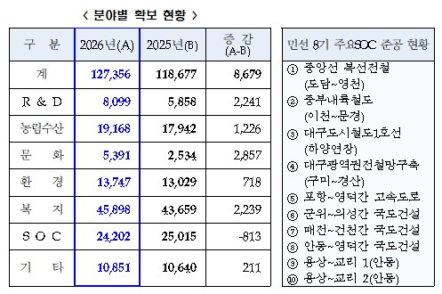 아울러 이철우 도지사를 비롯해 경북도의 전부서가 마지막까지 국회와 정부 부처를 수차례 방문하며 주요 사업의 필요성을 직접 설명하고 국비 반영을 적극적으로 설득했다. |  | | | ↑↑ 분야별 확보 현황 | | ⓒ 씨비엔뉴스 | |