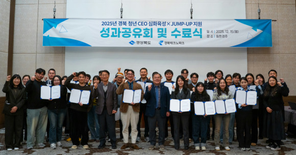 |  | | | ⓒ 씨비엔뉴스 | | [cbn뉴스=이재영 기자] 경상북도는 15일 경주 힐튼호텔에서 ‘2025년 경북 청년CEO심화육성 지원사업’ 및 ‘2025년 경북CEO JUMP-UP 지원사업’ 성과보고회 및 수료식을 개최했다.
