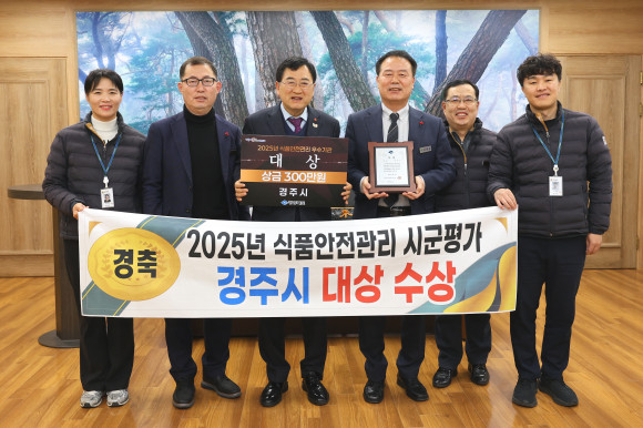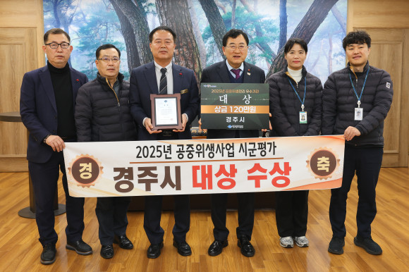 |  | | | ↑↑ 주낙영 경주시장이 2025년 공중위생관리사업 시군평가에서 대상을 수상한 시 관계자들과 기념촬영을 하고 있다 | | ⓒ CBN뉴스 - 경주 | | [cbn뉴스=이재영 기자] 경주시는 지난 18일 더케이호텔 경주에서 열린 '2025년 식품·공중위생관리사업 성과대회'에서 식품안전관리 분야와 공중위생관리 분야 모두 '대상'을 수상하며 2년 연속 2관왕을 달성했다.