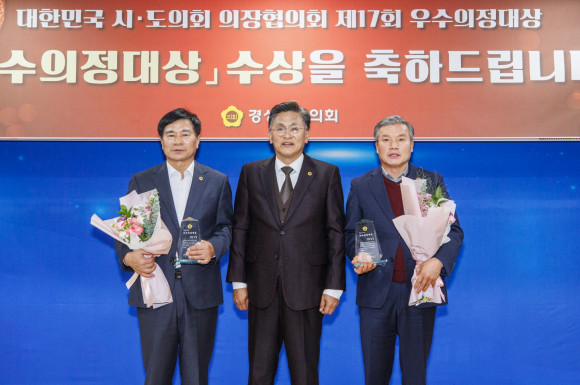 |  | | | ↑↑ 정영길(우) 경북도의원 대한민국시도의회의장협의회 '제17회 우수의정대상' 수상 | | ⓒ 씨비엔뉴스 | | [cbn뉴스=이재영 기자] 경상북도의회 정영길 의원(성주, 국민의힘)이 대한민국시도의회의장협의회가 수여하는 ‘제17회 우수의정대상’을 수상했다.
