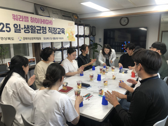 |  | | | ↑↑ 일가정양립지원(직장교육) | | ⓒ 씨비엔뉴스 | | 아울러 ‘경북 일자리 편의점’, 초등부모 10시 출근제, 일. 생활균형지원센터 운영 등을 통해 경력단절 예방과 가족친화 직장문화 확산에도 힘썼다. 그 결과 도내 가족친화인증기업은 311개소로 증가했다.