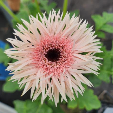 거베라 ‘핑키시스파이(Pinksh Spy)’는 연분홍색 스파이더형 화형으로 연간 주당 채화 수량이 124개로 많고, 생육이 왕성한 것이 특징이다.
