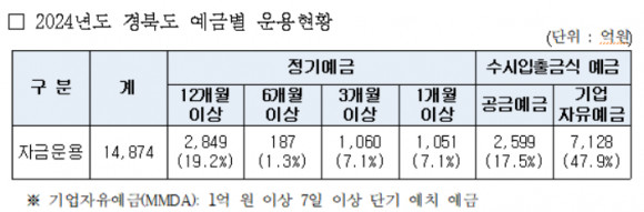 경상북도, 자금운용 현황 전국 상위권