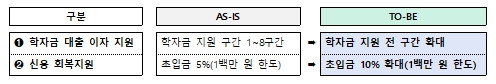 - 학자금 대출 이자 지원 전 구간 확대, 신용 회복 지원 초입금 10%로 상향 -