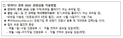 - 2026 경북방문의 해 맞아 철도 이용객 대상 반값 할인 -