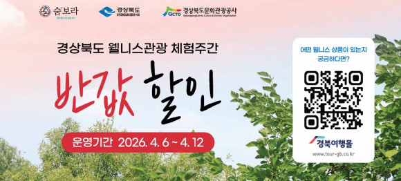 |  | | | ↑↑ 포스터 | | ⓒ 씨비엔뉴스 | | [cbn뉴스=이재영 기자] ‘2026 경북 방문의 해’를 맞아 몸과 마음을 치유하는 경북 웰니스 여행을 반값에 즐길 수 있는 특별한 기회가 열린다.