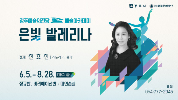 |  | | | ↑↑ 아카데미 여름학기 전광판 | | ⓒ CBN뉴스 - 경주 | | 발레강좌 〈은빛 발레리나〉는 대구예술대학교 전효진 교수가 진행하며, 정규반과 바리에이션반으로 운영된다. 60세 이상 여성을 대상으로 하는 프로그램으로, 정규반은 바(barre)와 센터(center) 수업을 기반으로 기본 자세와 움직임을 익히고, 신체의 균형과 표현력을 단계적으로 다지는 과정이다. 기존 수강생과 신규 수강생이 함께 어우러져 수업이 진행되며, 개인의 수준에 맞춰 자연스럽게 참여할 수 있도록 구성되어 있다.
