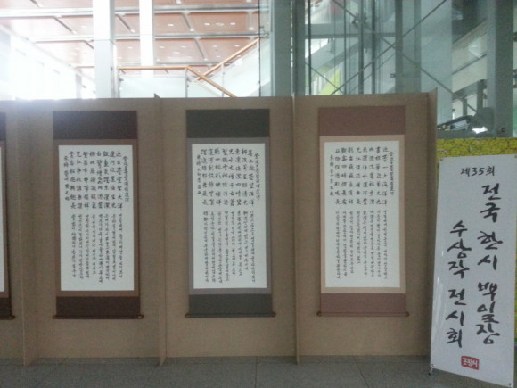|  | | | ⓒ CBN 뉴스 | | [이재영 기자]= 제35회 한시백일장 수상작 전시회가 11일부터 포항시청 2층 로비에서 열리고 있다.
